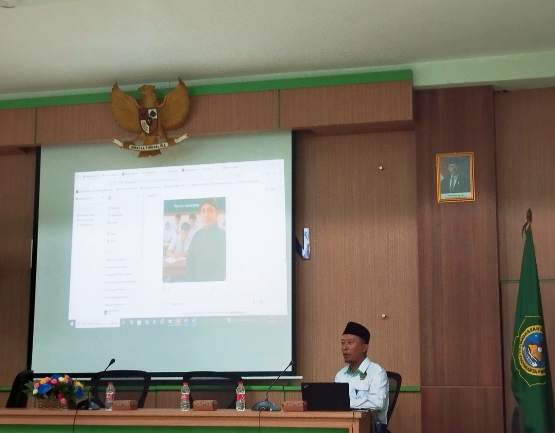 Sleman (MAN 1 Bantul) – Musyawarah Guru Mata Pelajaran (MGMP) Geografi Madrasah Aliyah (MA) se-Daerah Istimewa Yogyakarta yang digelar di MAN 1 Sleman menjadi ajang berbagi praktik baik bagi para pendidik. Salah satu momen menarik adalah pemaparan yang disampaikan oleh Bapak Suharyono, S.Pd, guru Geografi MAN 1 Bantul, yang membagikan pengalaman inovatif dalam memanfaatkan platform Artificial Intelligence (AI) antara lain Chatgpt, Gemini, Plexity, dan MagicPen untuk mendukung pembelajaran.