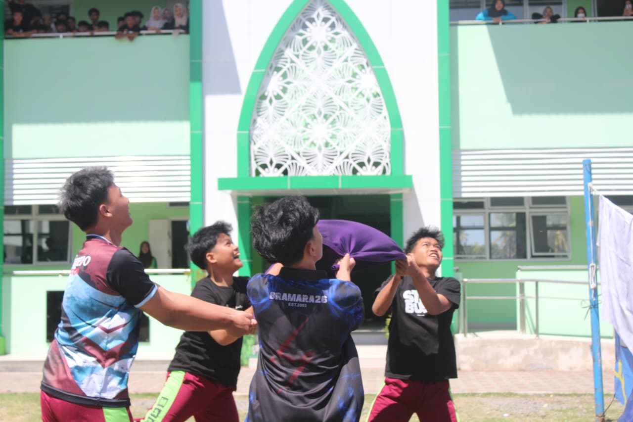 Pertandingan berlangsung seru, di mana para pemain saling melempar balon air yang ditangkap menggunakan sarung. Dukungan penuh dari teman-teman sekelas semakin membakar semangat tim FD2 hingga berhasil mengalahkan lawannya dengan skor tipis 7–6.