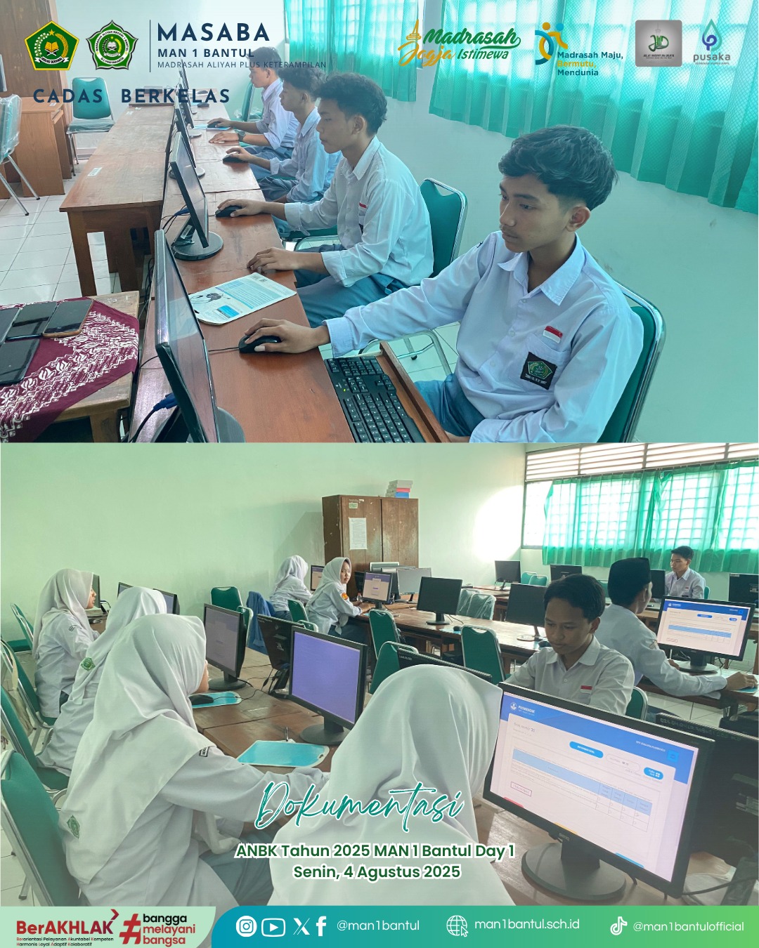 “Alhamdulillah, ANBK 2025 di MAN 1 Bantul berjalan dengan lancar. Saya sangat mengapresiasi kerja sama siswa, guru, serta tenaga kependidikan yang telah berperan aktif. Semoga hasil asesmen ini menjadi bahan evaluasi untuk terus meningkatkan mutu pembelajaran, dan siswa kita dapat tumbuh menjadi generasi yang unggul sesuai dengan semangat CADAS BERKELAS – Cerdas, Agamis, Demokratis, Adaptif, Smart, Berkarakter, Cinta Lingkungan, dan Anti Diskriminasi,” ungkapnya.