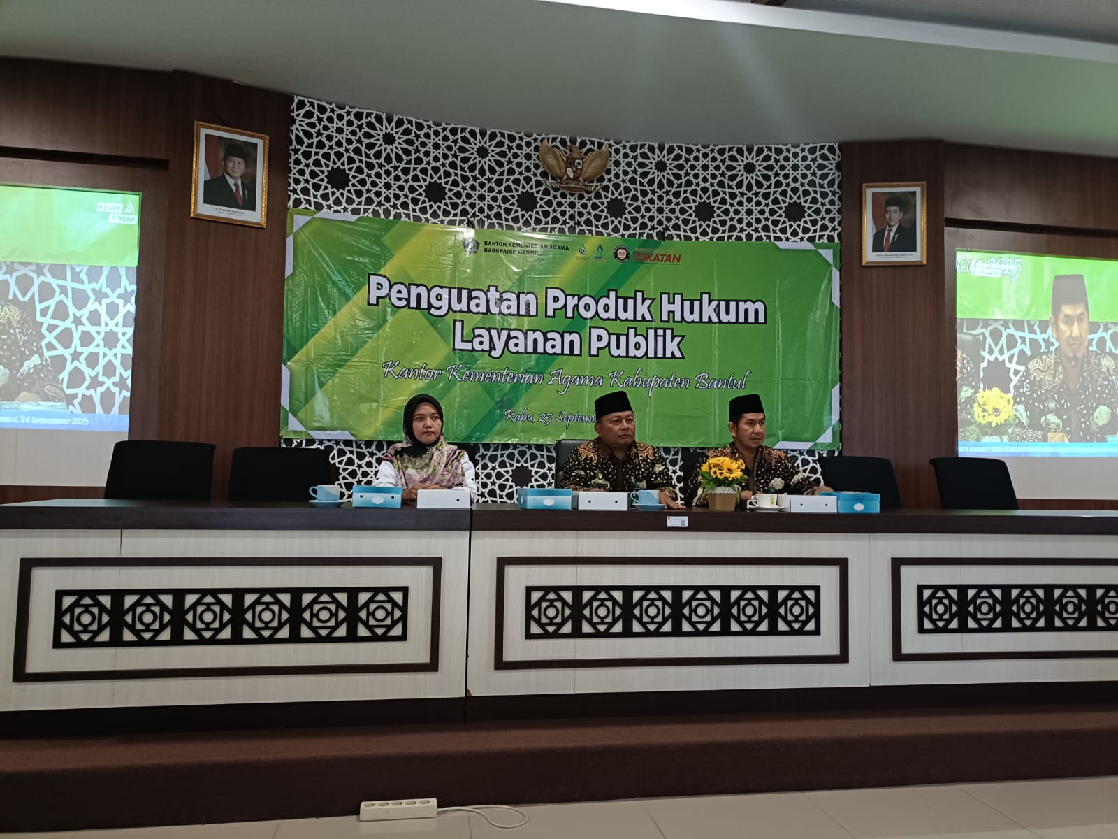 Bantul (MAN 1 Bantul) – Kepala MAN 1 Bantul, Mafrudah, S.Ag., M.Pd.I., menghadiri kegiatan Penguatan Produk Hukum Layanan Publik yang diselenggarakan Kantor Kementerian Agama Kabupaten Bantul pada Rabu (24/09/2025) di Aula PLHUT Kemenag Bantul. Kegiatan ini diikuti oleh pimpinan Kemenag, Kepala Madrasah se-Bantul, serta para pejabat terkait.
