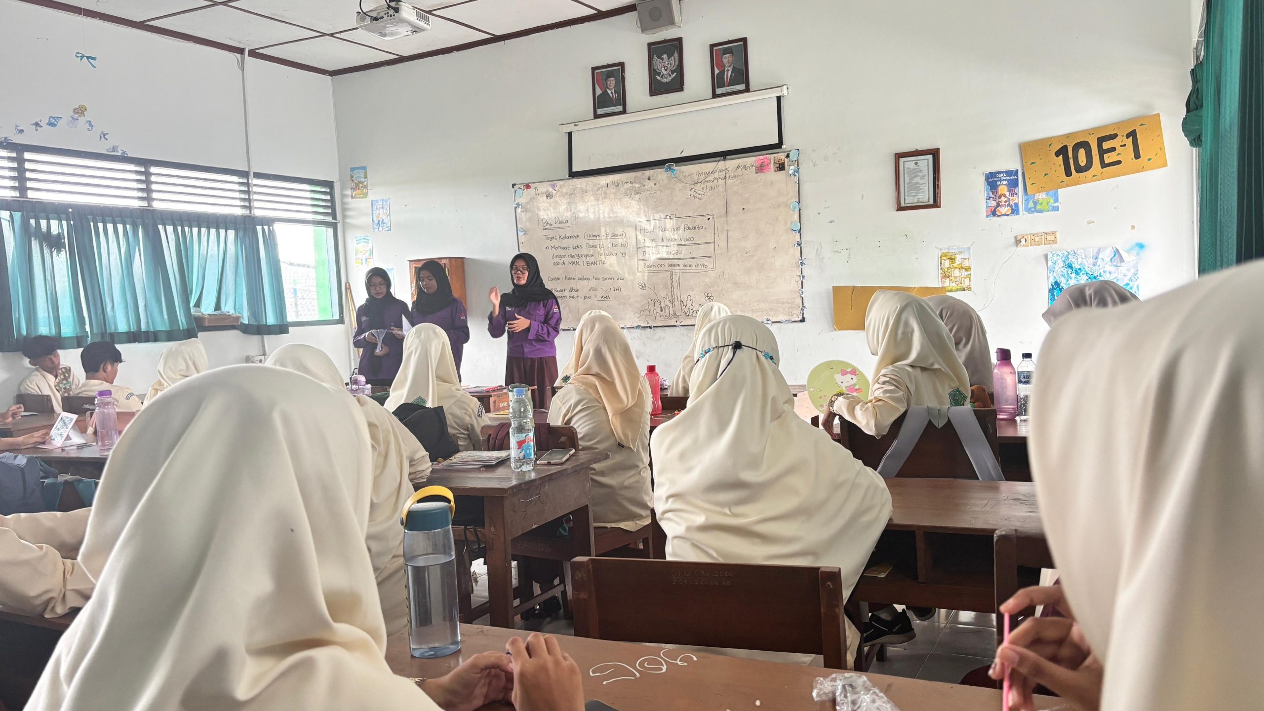 Siswa kelas E1 juga menunjukkan antusiasme selama kegiatan berlangsung. Mereka tampak aktif dan kooperatif saat mengisi angket serta berinteraksi dengan mahasiswa yang hadir.