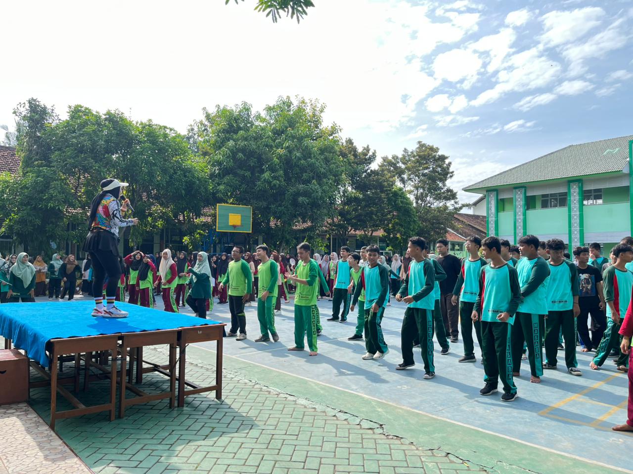 Dipandu oleh instruktur senam yang enerjik, seluruh peserta mengikuti gerakan dengan penuh semangat. Tidak hanya menyehatkan jasmani, kegiatan ini juga mempererat tali silaturahmi antarwarga madrasah dan menumbuhkan rasa kebersamaan di antara guru, tenaga kependidikan, dan peserta didik.