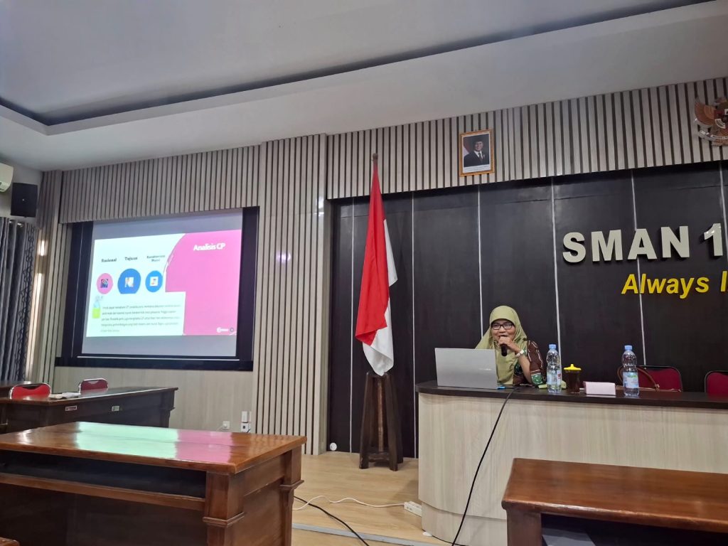 Materi disampaikan oleh narasumber Dr. Nurhidayah, M.Hum., Dosen PBSI Universitas Negeri Yogyakarta, yang menekankan pentingnya pemahaman dokumen CP secara utuh sebagai dasar perencanaan pembelajaran. Peserta MGMP diajak untuk menyelaraskan kebutuhan pembelajaran di kelas dengan kebijakan kurikulum, serta menyusun tujuan pembelajaran yang relevan, fleksibel, dan berorientasi pada kompetensi peserta didik.