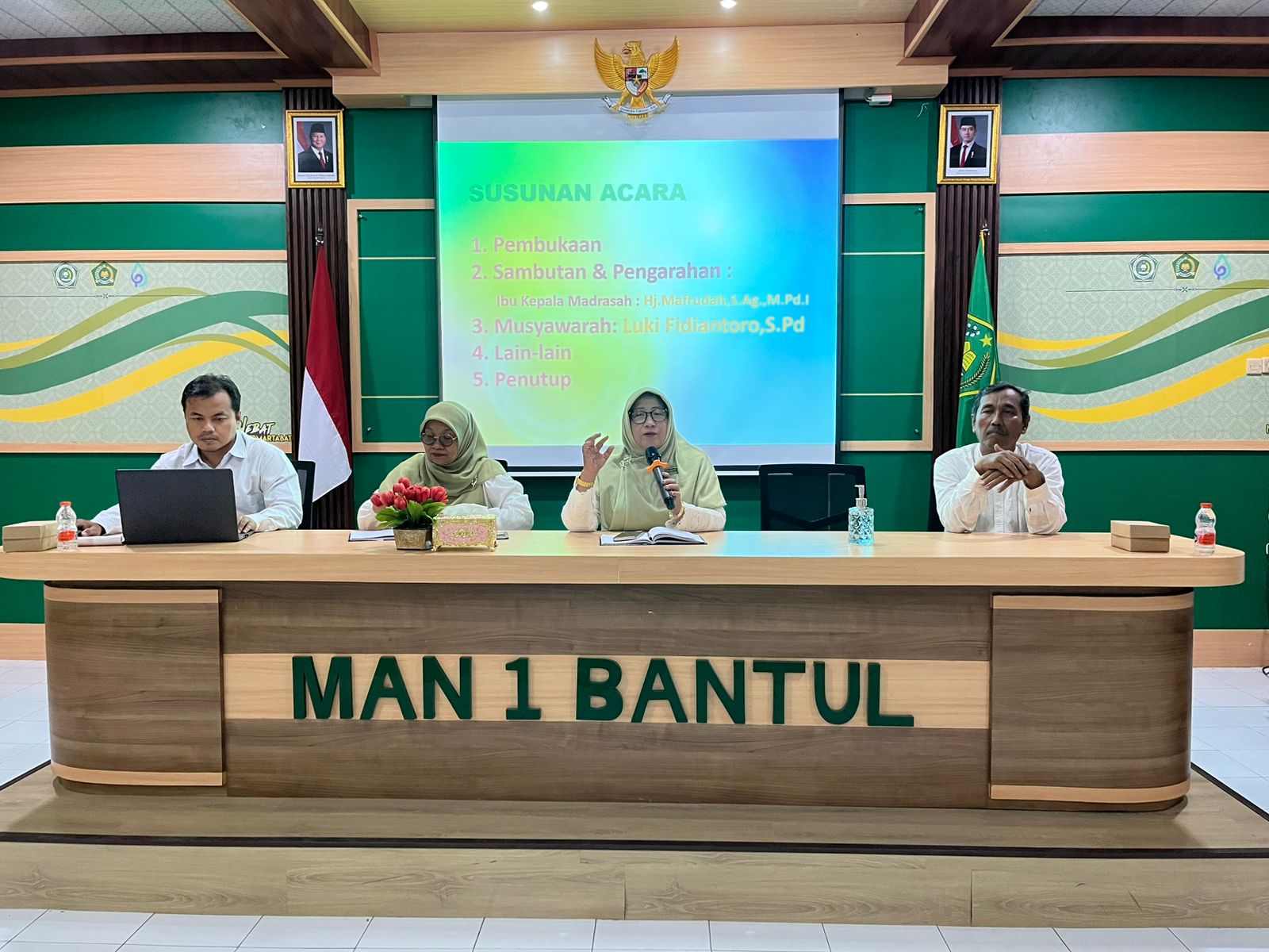 Kepala MAN 1 Bantul, Mafrudah, S.Ag., M.Pd.I, menyampaikan apresiasi atas kesiapan panitia dalam memulai rangkaian kegiatan SPMB. “Seleksi Penerimaan Murid Baru harus kita siapkan dengan matang sejak awal. Saya berharap seluruh panitia bekerja secara profesional, transparan, dan bertanggung jawab agar proses SPMB MAN 1 Bantul berjalan lancar serta memberikan kepercayaan penuh kepada masyarakat.,” ujar Mafrudah.