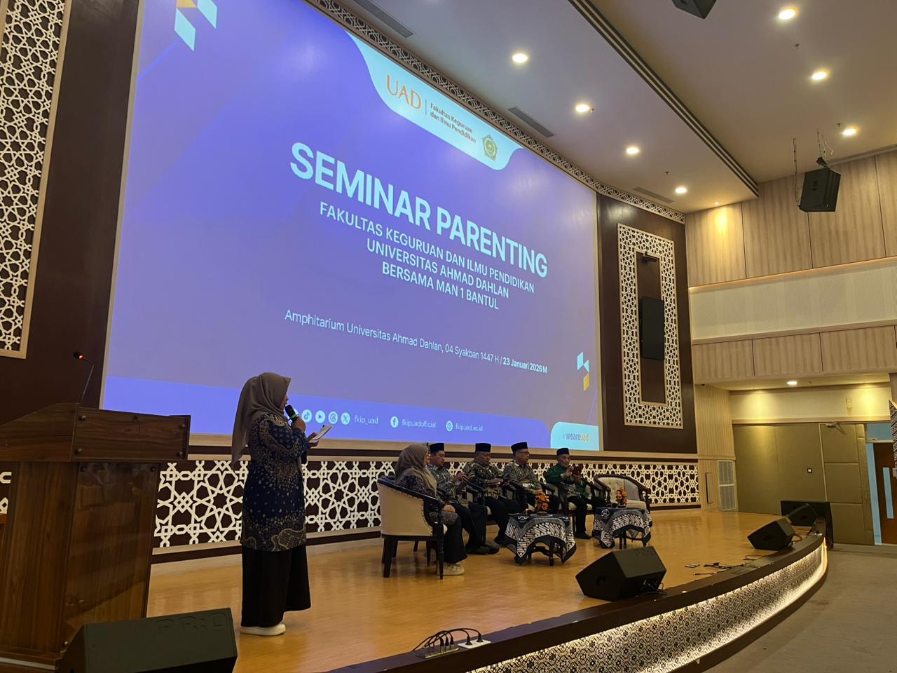 Yogyakarta (Universitas Ahmad Dahlan) Kegiatan Seminar Parenting kerja sama Fakultas Keguruan dan Ilmu Pendidikan (FKIP) Universitas Ahmad Dahlan (UAD) dengan MAN 1 Bantul diselenggarakan pada Jumat, (23/01/2026). Acara ini berlangsung di Ruang Amphitarium lantai 9 Universitas Ahmad Dahlan mulai pukul 07.00 WIB hingga selesai. Seminar tersebut diikuti oleh seluruh siswa-siswi kelas XII FL bersama orang tua serta wali kelas masing-masing sebagai bentuk sinergi antara madrasah, perguruan tinggi, dan keluarga dalam mendampingi peserta didik menghadapi masa depan.