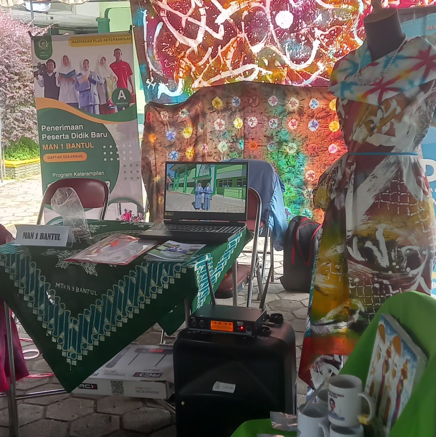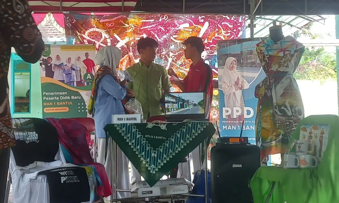 Bantul (MAN 1 Bantul) Madrasah Aliyah Negeri 1 Bantul mengikuti kegiatan promosi dengan membuka stan Seleksi Penerimaan Murid Baru (SPMB) dalam rangka memenuhi undangan dari MTsN 3 Bantul pada Rabu, (28/01/2026). Kegiatan ini dilaksanakan sebagai upaya memperkenalkan MAN 1 Bantul kepada peserta didik kelas IX serta memberikan informasi seputar program unggulan, kegiatan pembelajaran, dan fasilitas yang dimiliki madrasah, dan berbagai produk hasil karya siswa baik dari kelas akademik hingga kelas keterampilan otomotif, tata busana, serta multimedia. Kehadiran stan promosi ini disambut antusias oleh para siswa MTsN 3 Bantul yang ingin mengenal lebih dekat jenjang pendidikan lanjutan di MAN 1 Bantul.