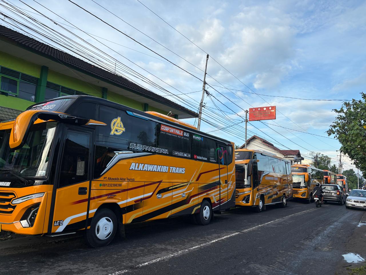 Tepat pukul 07.00 WIB, iring-iringan 7 Bus Kembar Alkawakibi mulai bergerak meninggalkan halaman madrasah. Para siswa tampak rapi mengenakan pakaian serba putih, menciptakan pemandangan yang menyerupai suasana di Tanah Suci. Semangat terpancar dari wajah para peserta yang siap mempraktikkan rukun-rukun Islam kelima secara langsung dalam simulasi ini.