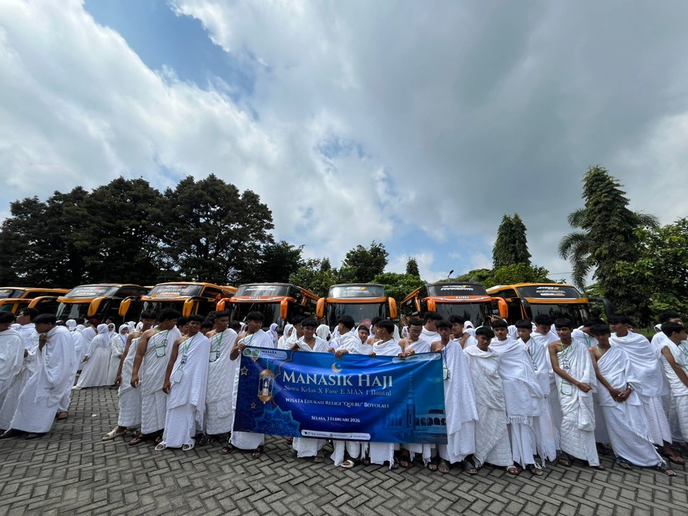 Bantul (MAN 1 Bantul) — Dalam rangka pembelajaran praktik ibadah haji, siswa kelas X MAN 1 Bantul melaksanakan kegiatan Manasik Haji di Boyolali pada Selasa (3/2/2026). Kegiatan ini diikuti oleh seluruh siswa kelas X dengan penuh antusias serta didampingi oleh guru Pendidikan Agama Islam dan wali kelas.
