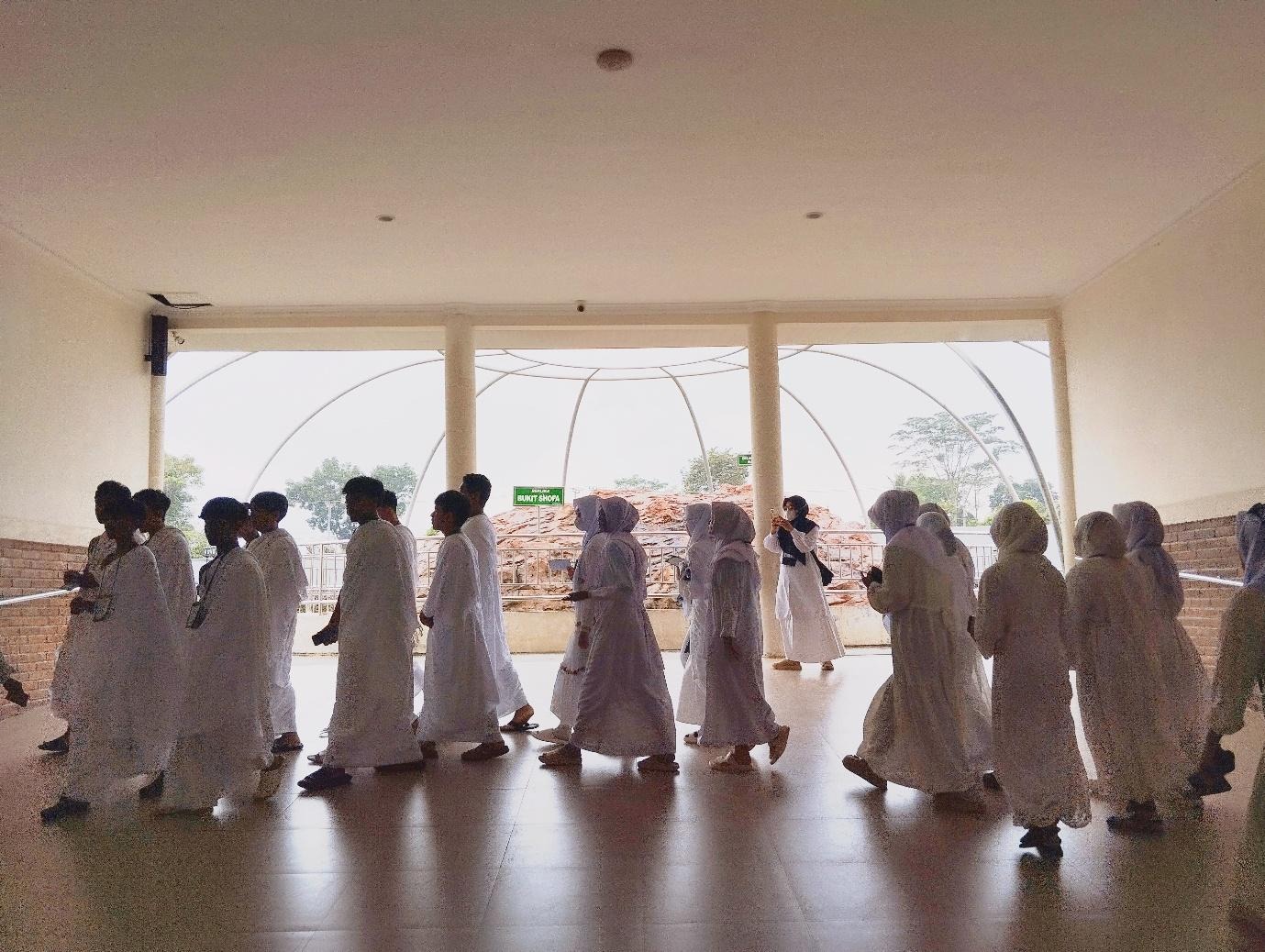 Siswa MAN 1 Bantul melaksanakan kegiatan simulasi manasik haji sebagai bagian dari persiapan MIQOT (Mikat)