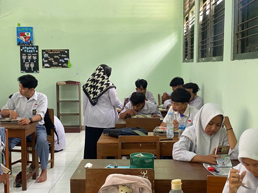 Kegiatan pemantauan ini dilakukan untuk memastikan program berjalan dengan baik serta memberikan manfaat optimal bagi peserta didik. Siswa kelas XI FD 5 terlihat sangat bersemangat dan antusias mengikuti kegiatan makan bersama yang telah disiapkan dengan menu bergizi dan seimbang.