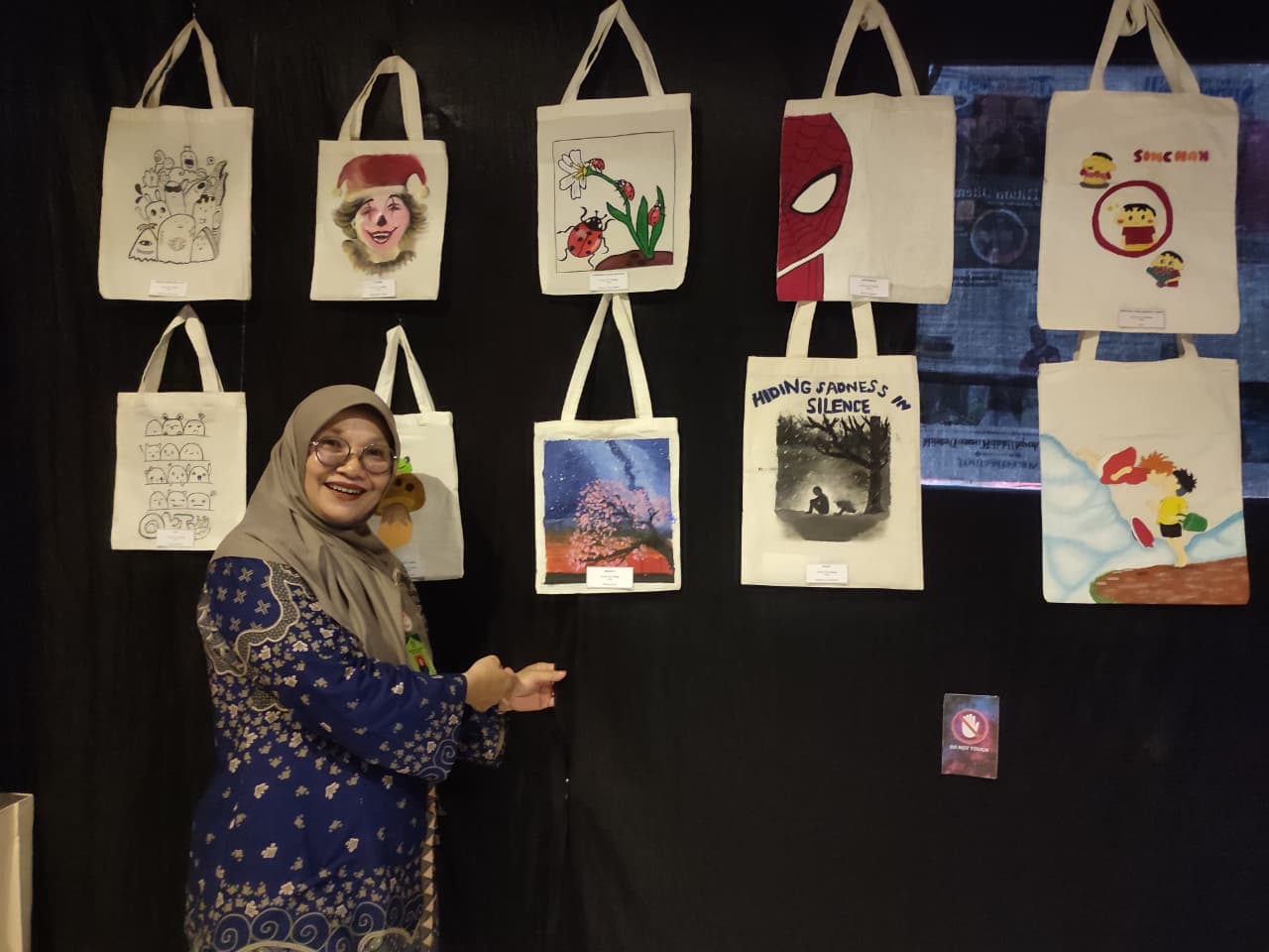 Martiningsih, S.Pd.I menyampaikan rasa bangganya terhadap karya-karya yang dipamerkan.