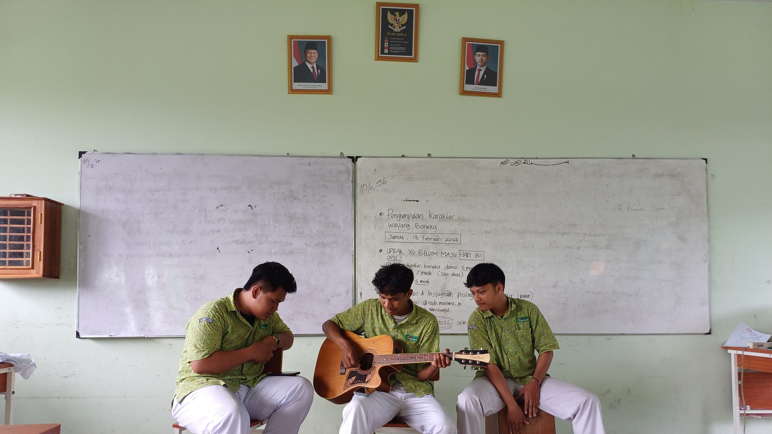 Bantul (MAN 1 Bantul) – Pelaksanaan ujian praktik Seni Budaya di kelas 12 FL2 MAN 1 Bantul berlangsung meriah dengan materi penilaian keterampilan seni musik. Para siswa menampilkan kemampuan memainkan alat musik sekaligus bernyanyi, baik secara individu maupun berkelompok. Ada penampilan solo gitar yang memukau, serta kolaborasi kelompok dengan aransemen sederhana namun harmonis, sehingga suasana kelas berubah menjadi panggung apresiasi seni yang hidup (11/02/2026).