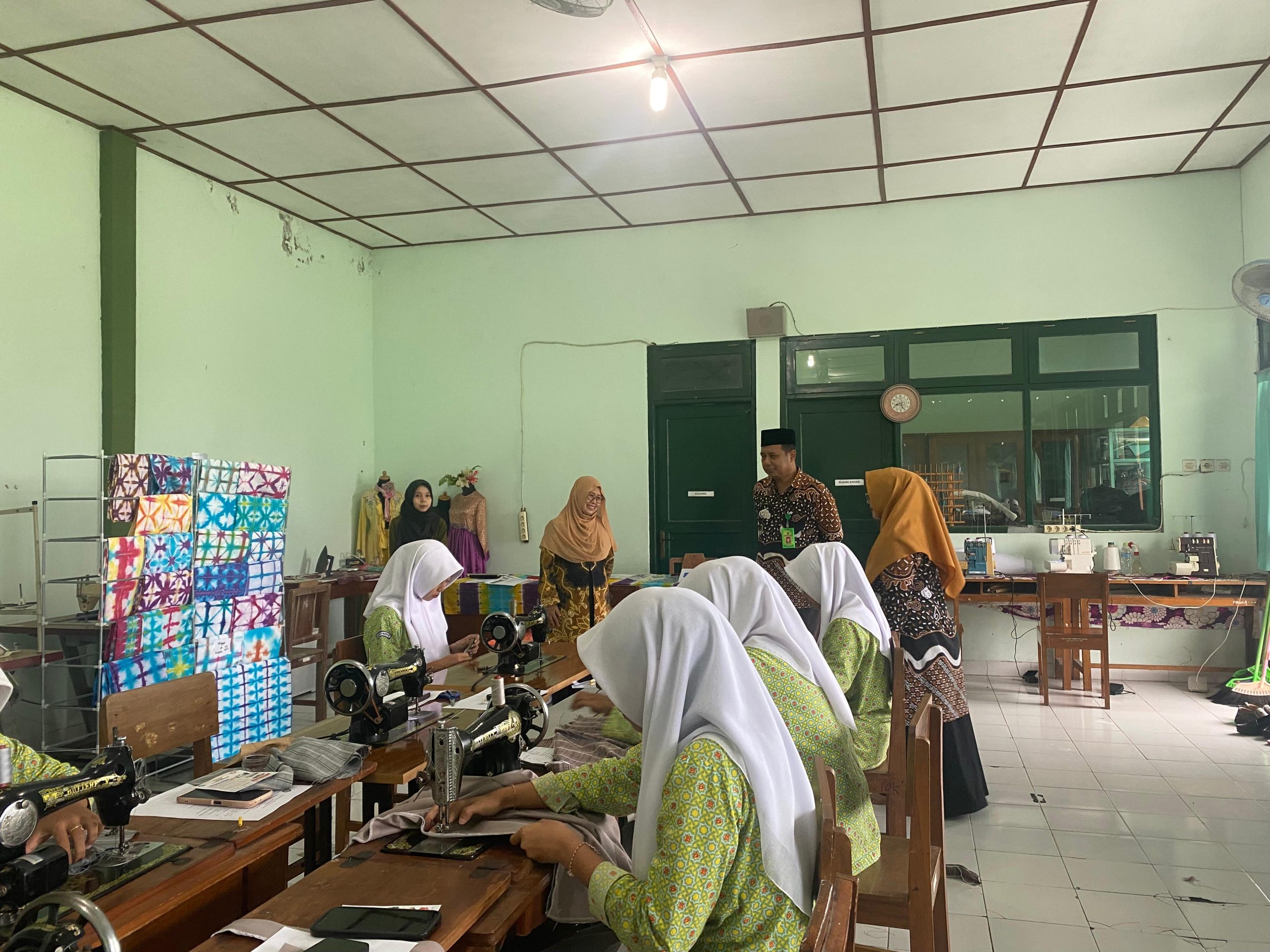 BANTUL (MAN 1 Bantul) – Pelaksanaan Uji Kompetensi Keterampilan jurusan Tata Busana di MAN 1 Bantul mendapat monitoring dan evaluasi langsung dari Kepala Madrasah Mafrudah, S.Ag., M.Si., Kepala TU Martiningsih, S.Pd.I., serta Pengawas Madrasah Sumarna, M.Pd., pada Rabu, 25 Februari 2026.