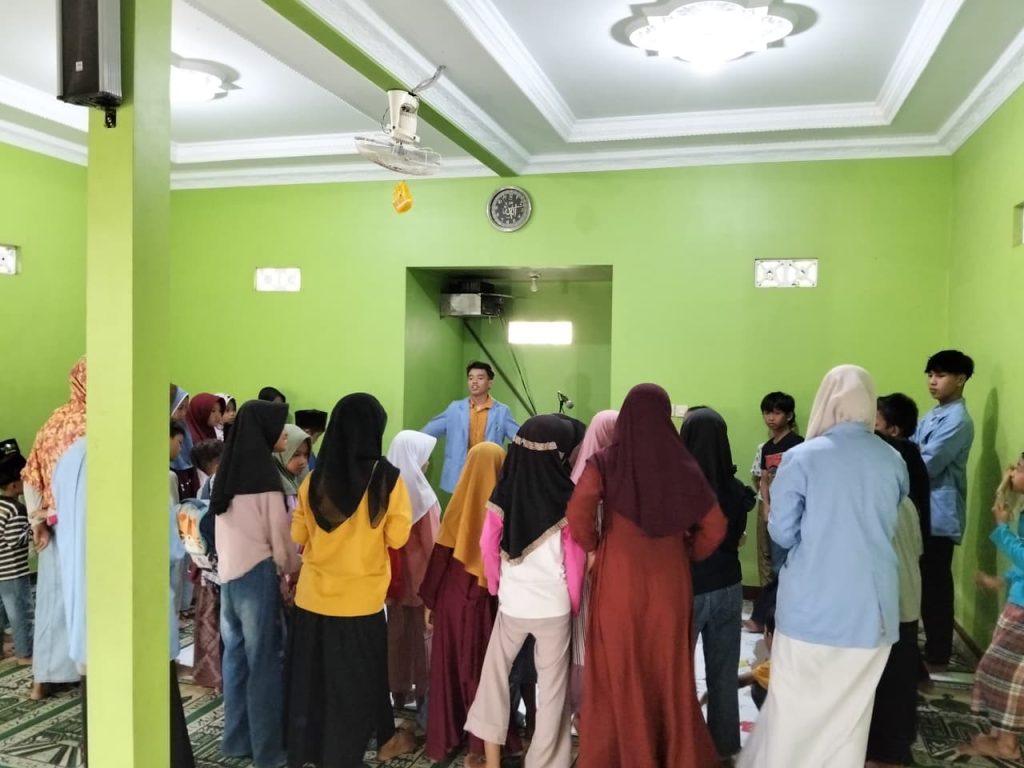 Suasana kegiatan berlangsung seru dan penuh keceriaan. Anak-anak terlihat sangat antusias menjawab berbagai pertanyaan yang diberikan, mulai dari pengetahuan dasar Islam hingga pertanyaan ringan seputar ibadah.