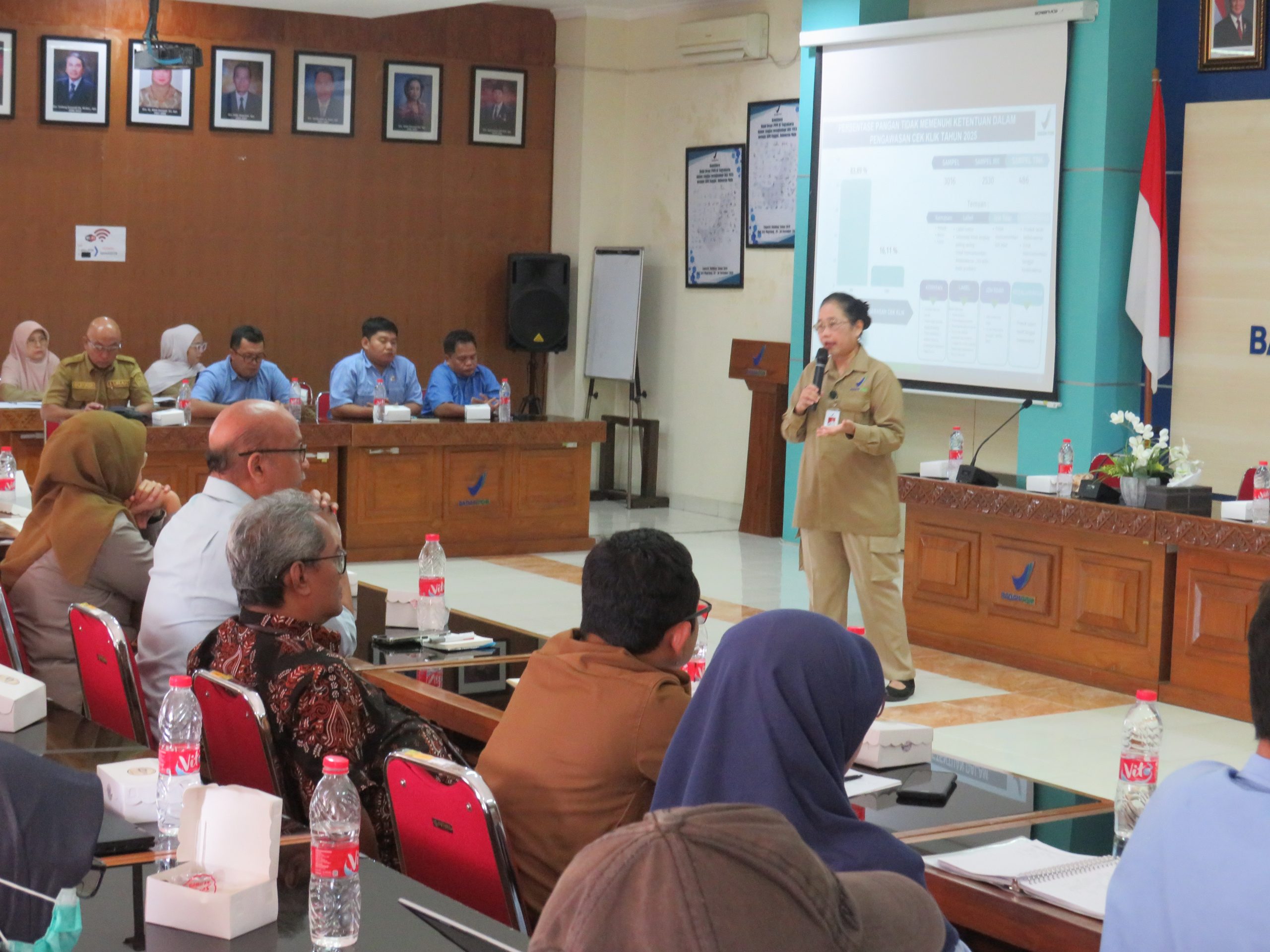 Kegiatan yang dilaksanakan pada Selasa (7/4/2026) di Aula BBPOM Yogyakarta ini menghadirkan Kepala BBPOM Yogyakarta, Ani Fatimah Isfarjanti, S.Si., Apt., M.H., sebagai narasumber utama. Dalam paparannya, ia menyampaikan pentingnya implementasi Kebijakan Program Nasional Desa Pangan Aman, Pasar Pangan Aman Berbasis Komunitas, serta Sekolah yang Melaksanakan Pembudayaan Keamanan Pangan sebagai bagian dari prioritas nasional.