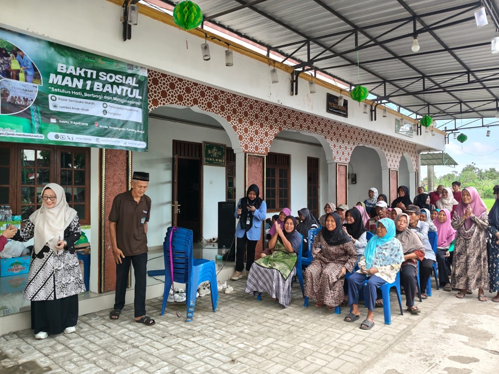 Kepala MAN 1 Bantul dalam sambutannya menyampaikan bahwa kegiatan ini merupakan bagian dari upaya madrasah dalam memperkuat hubungan dengan masyarakat serta meningkatkan kepedulian sosial seluruh warga madrasah. “Melalui kegiatan ini, kami berharap dapat memberikan manfaat bagi masyarakat serta menumbuhkan semangat berbagi dan kebersamaan,” ujarnya.