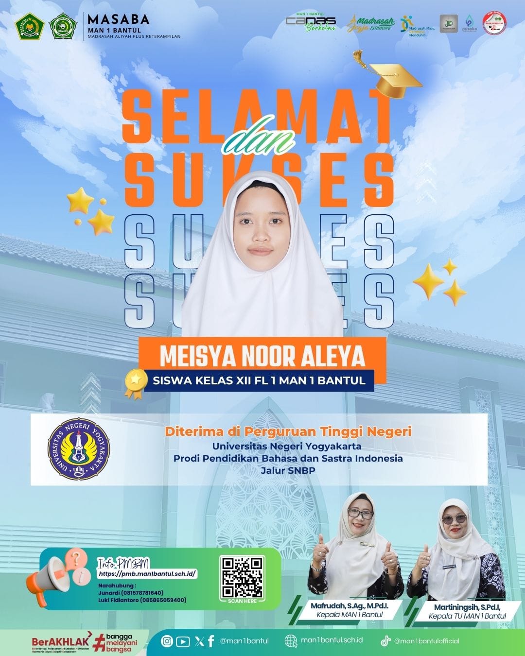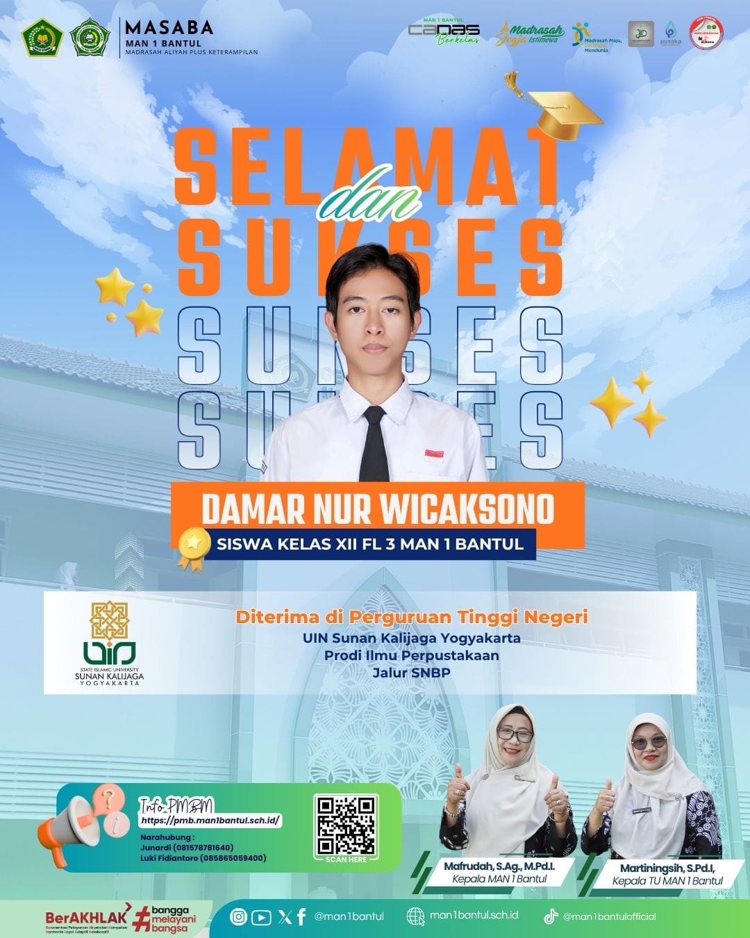 Bantul (MAN 1 Bantul) — Kabar membanggakan kembali datang dari MAN 1 Bantul. Salah satu