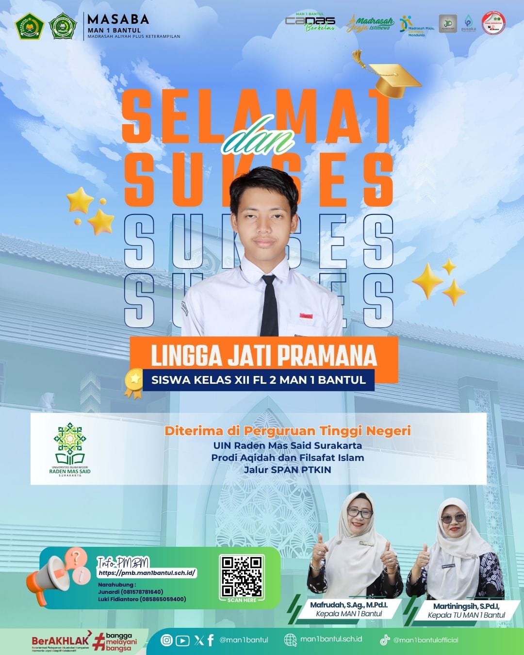 Bantul (MAN 1 Bantul) — Prestasi membanggakan kembali diraih oleh siswa MAN 1 Bantul. Lingga