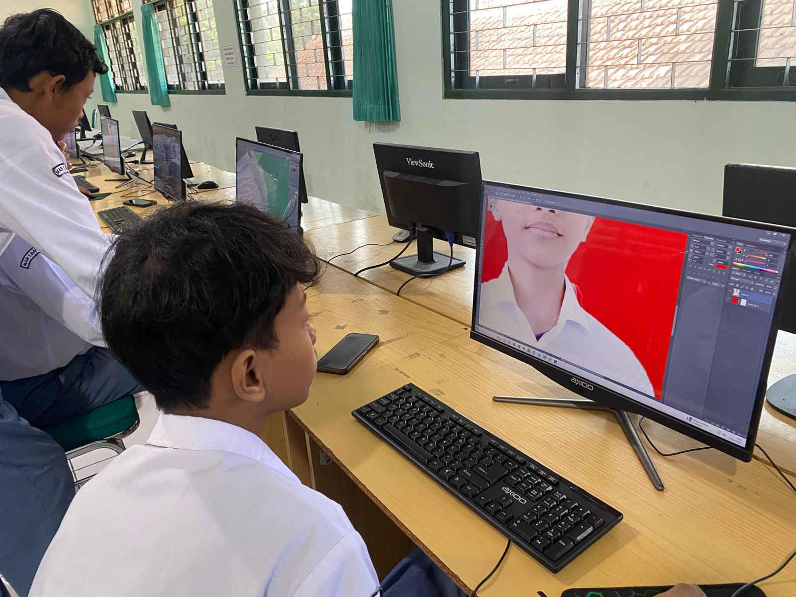 Dalam kegiatan ini, siswa mempraktikkan langsung teknik fotografi dasar, seperti pengaturan pencahayaan, posisi objek, serta komposisi foto. Setelah proses pengambilan gambar, siswa melanjutkan ke tahap editing untuk menghasilkan foto formal 3×4 yang rapi dan siap digunakan.