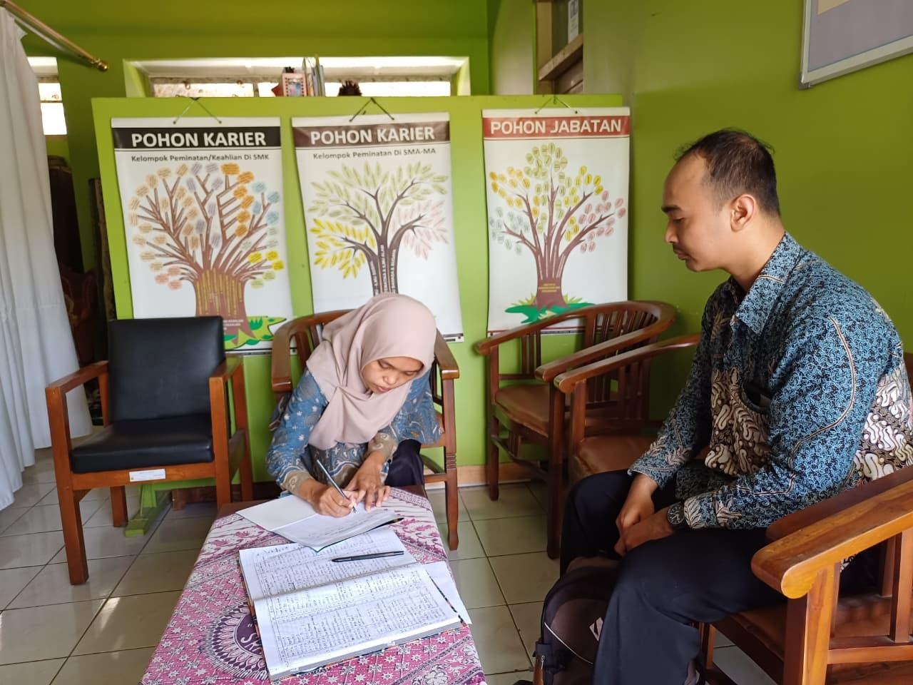Bantul (MAN 1 Bantul) – Dua anggota tim promosi PMBM MAN 1 Bantul, Nurdianta dan Nada, melaksanakan kegiatan promosi secara interaktif di SMP Negeri 1 Srandakan pada Kamis (2/4/2026). Dalam kegiatan tersebut, keduanya menyampaikan informasi terkait Penerimaan Murid Baru Madrasah (PMBM) dengan metode komunikatif yang melibatkan partisipasi aktif civitas SMP Negeri 1 Srandakan. Materi yang disampaikan mencakup program unggulan, kegiatan siswa, serta peluang pengembangan diri yang tersedia di MAN 1 Bantul.
