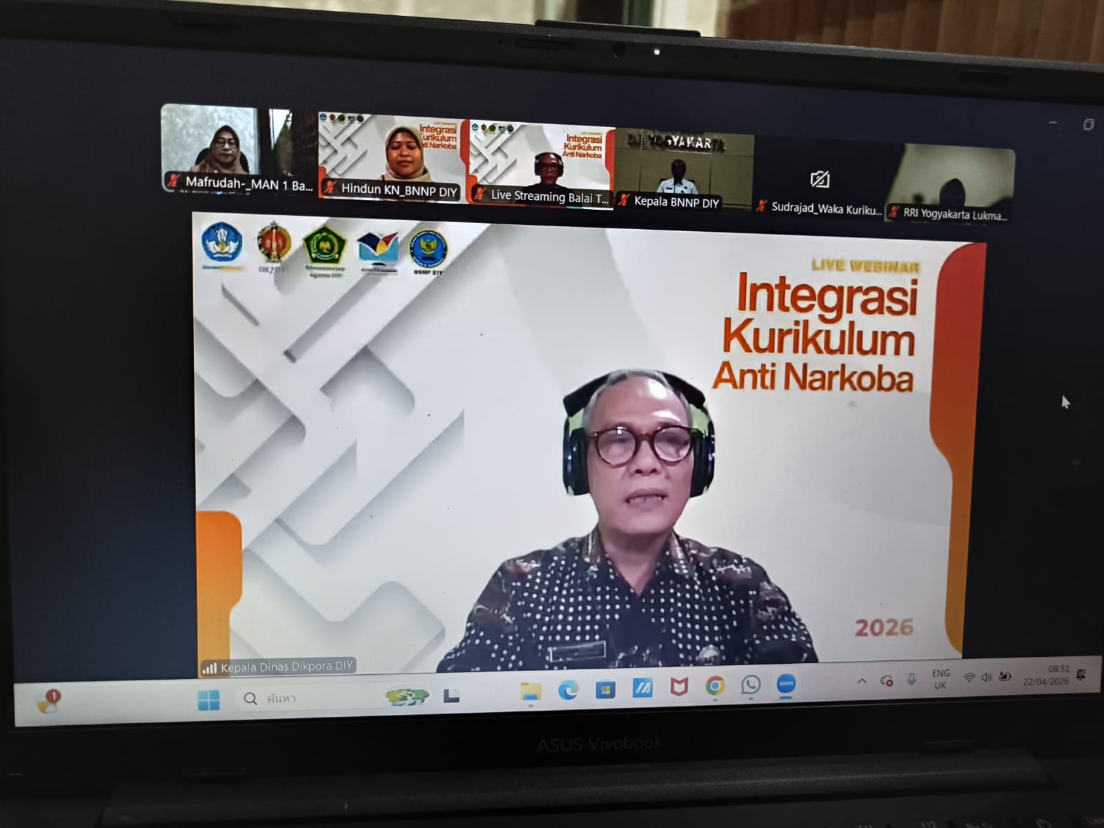 Bantul (MAN 1 Bantul) — Kepala MAN 1 Bantul, Mafrudah, S.Ag., M.Pd.I., mengikuti secara antusias kegiatan pembukaan Zoom Meeting Sosialisasi IKAN (Integrasi Kurikulum Anti Narkoba) yang diselenggarakan melalui kolaborasi lintas instansi di Daerah Istimewa Yogyakarta. Kegiatan ini menjadi langkah strategis dalam memperkuat sinergi antara dunia pendidikan dan lembaga negara dalam upaya pencegahan penyalahgunaan narkoba sejak dini di lingkungan satuan pendidikan.