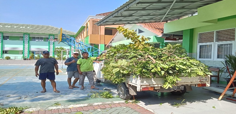 Jaga Kenyamanan Lingkungan Belajar, Petugas Kebersihan MAN 1 Bantul Lakukan Pemangkasan Dahan dan Ranting di Area Madrasah