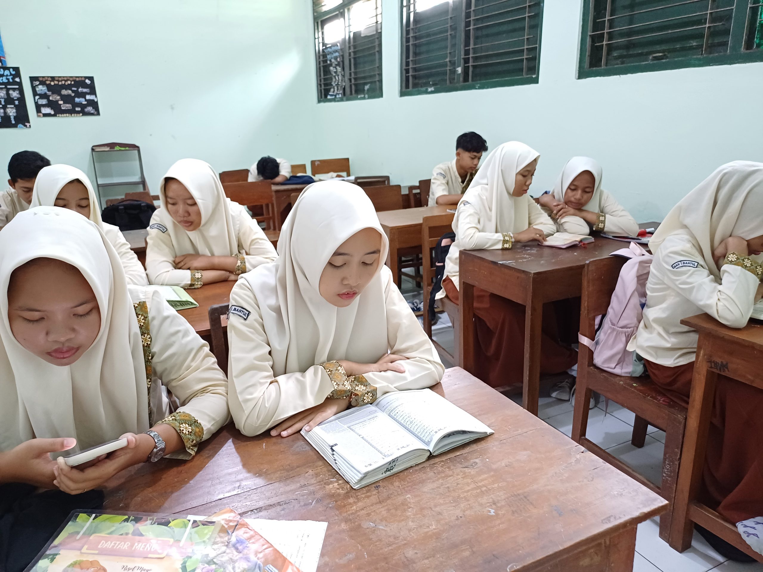 Bantul (MAN 1 Bantul) – Siswa kelas 11 FD5 MAN 1 Bantul melaksanakan kegiatan tadarus