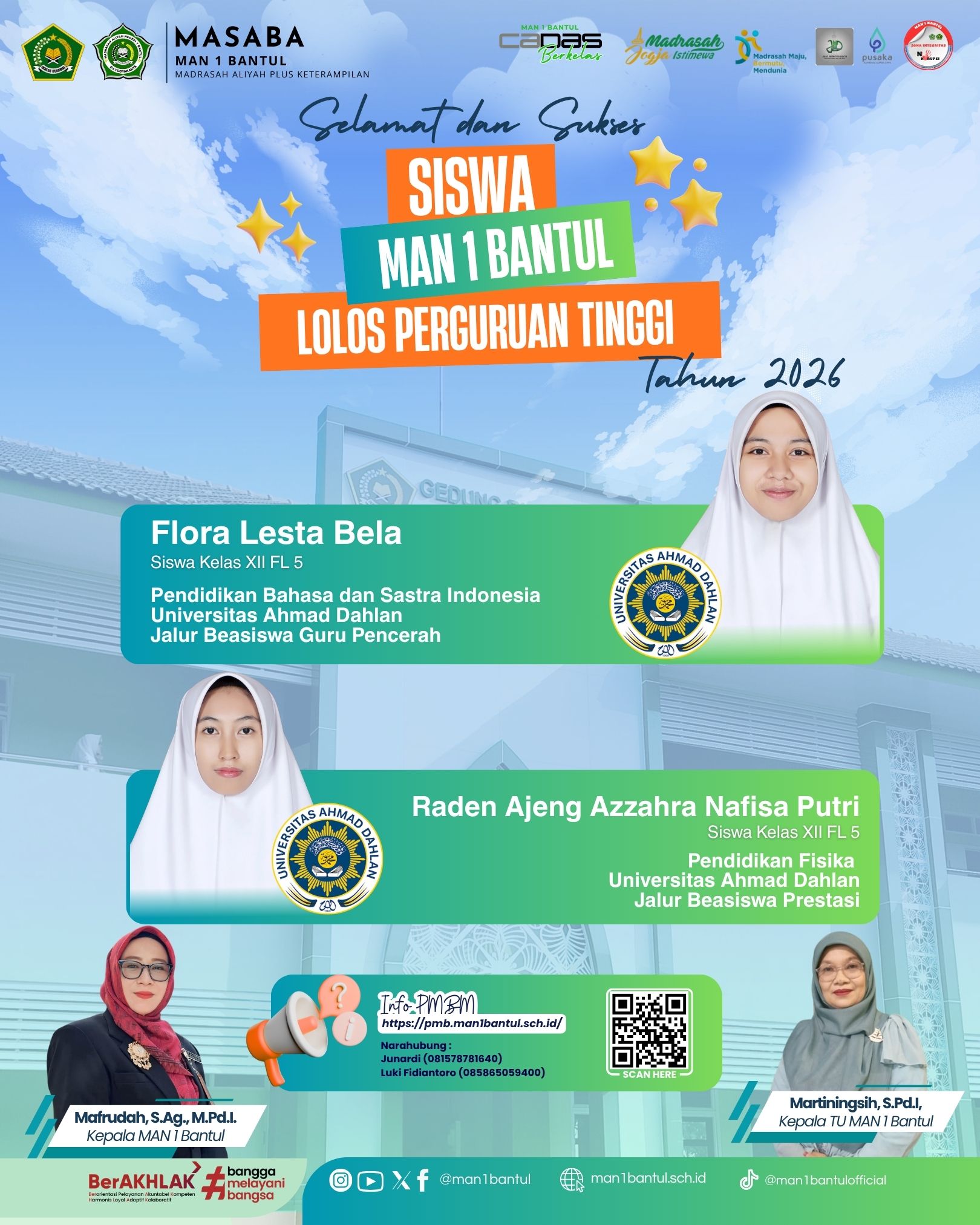 Bantul (MAN 1 Bantul) – Dua siswa MAN 1 Bantul berhasil diterima di Universitas Ahmad