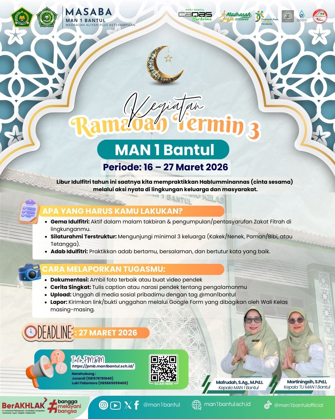 Bantul (MAN 1 Bantul) – MAN 1 Bantul kembali memberikan Tugas Ramadan Termin 3 kepada